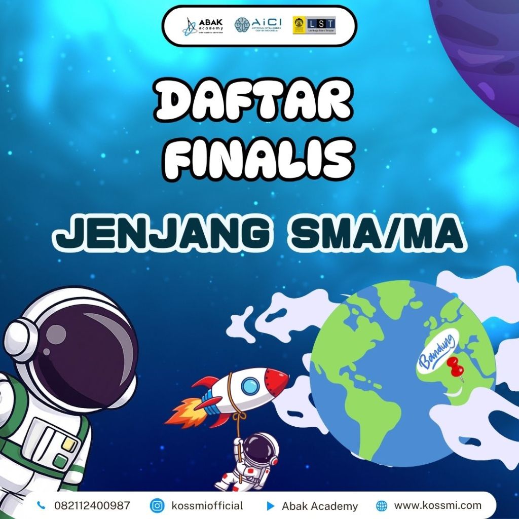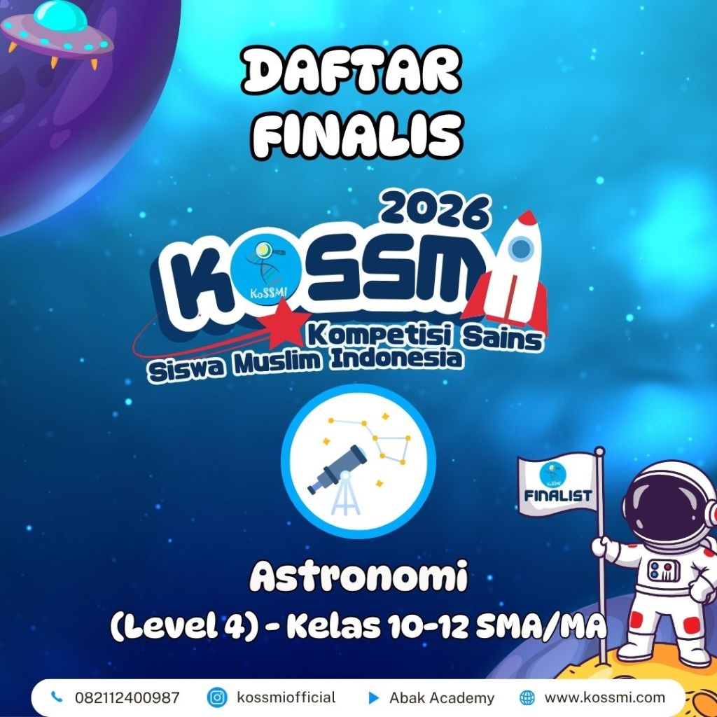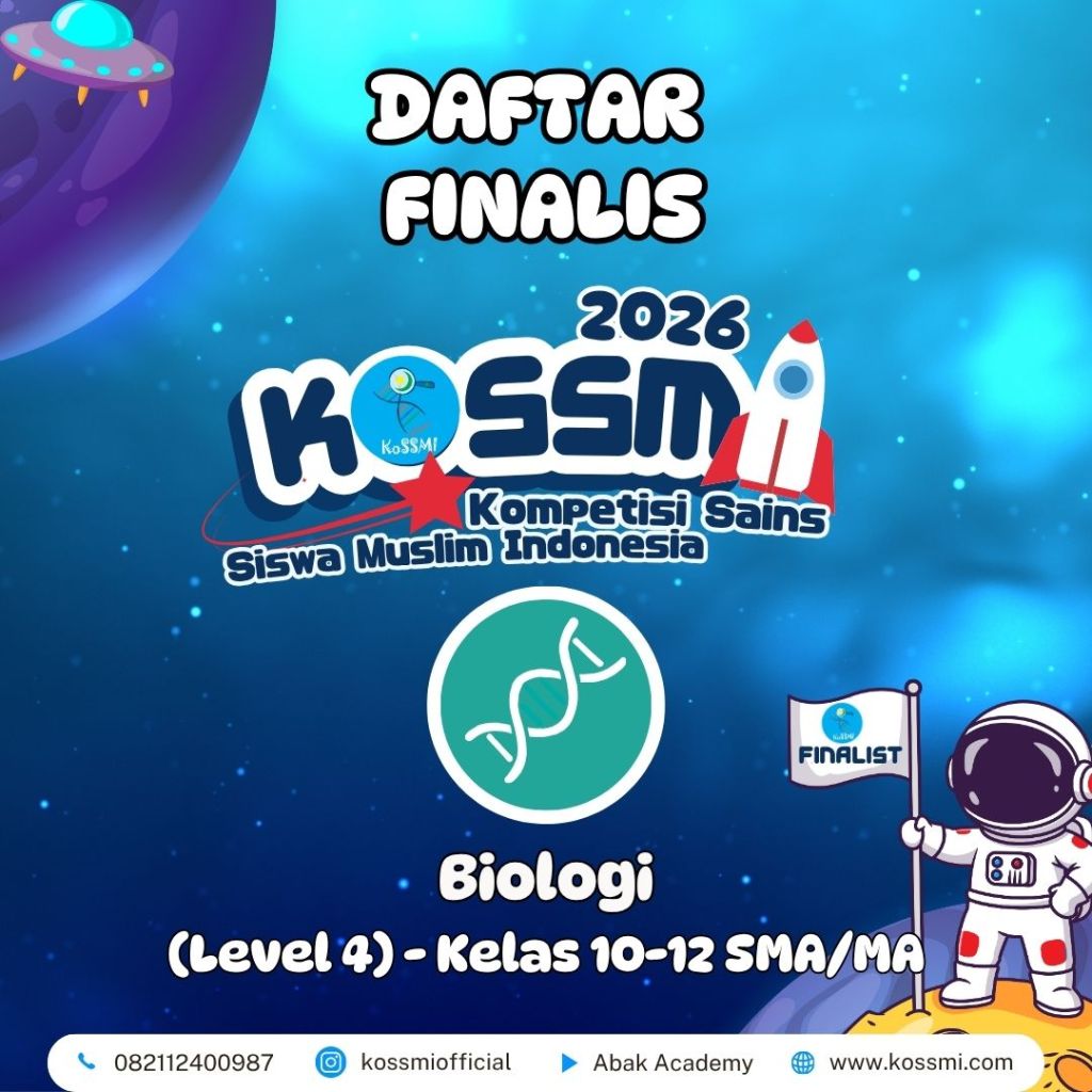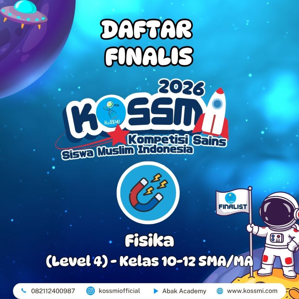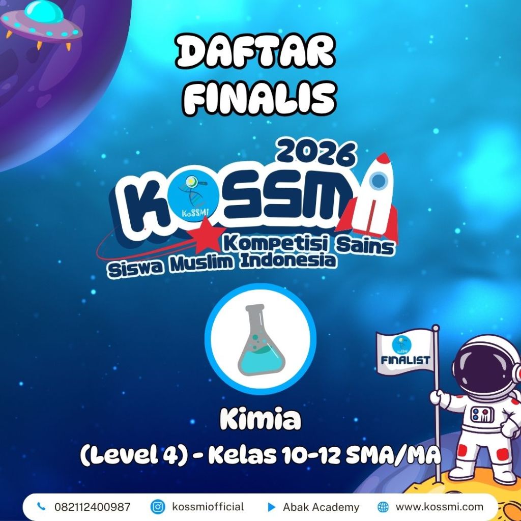 Daftar Finalis Jenjang SMA/MA KoSSMI 2026 Daftar Finalis Matematika Level 4 Daftar Finalis Kimia Level 4 Daftar Finalis Fisika Level 4 Daftar Finalis Biologi Level 4 Daftar Finalis Ekonomi Level 4 Daftar Finalis Geografi Level 4 Daftar Finalis Informatika Level 4 Daftar Finalis Astronomi Level 4 Daftar Finalis Kebumian Level 4 Daftar Finalis Artificial Intelligence Level 4