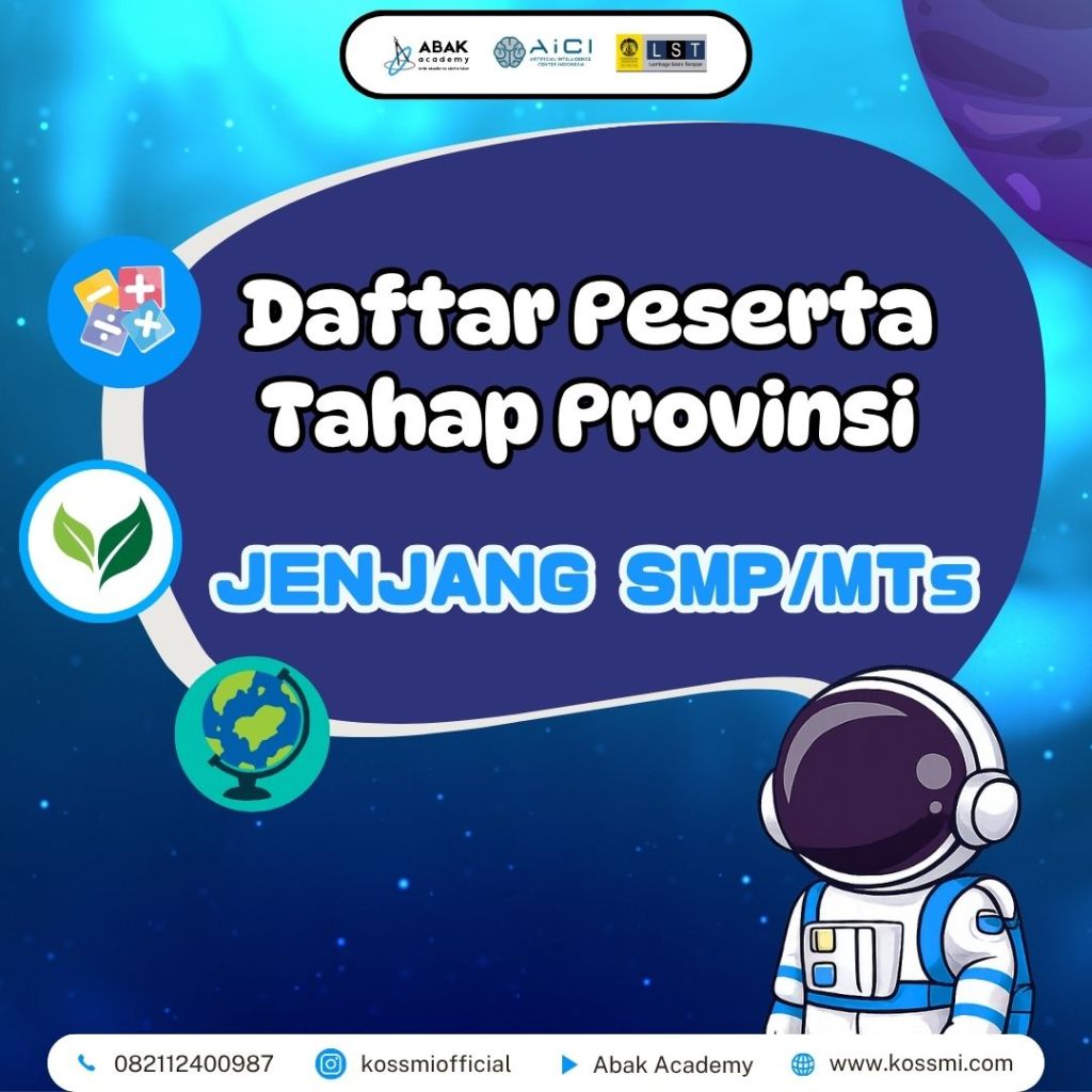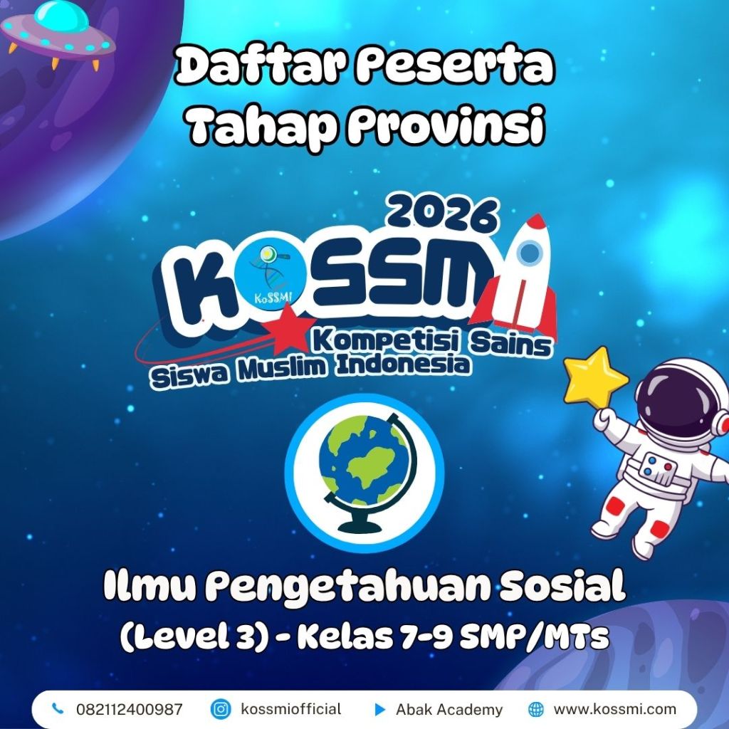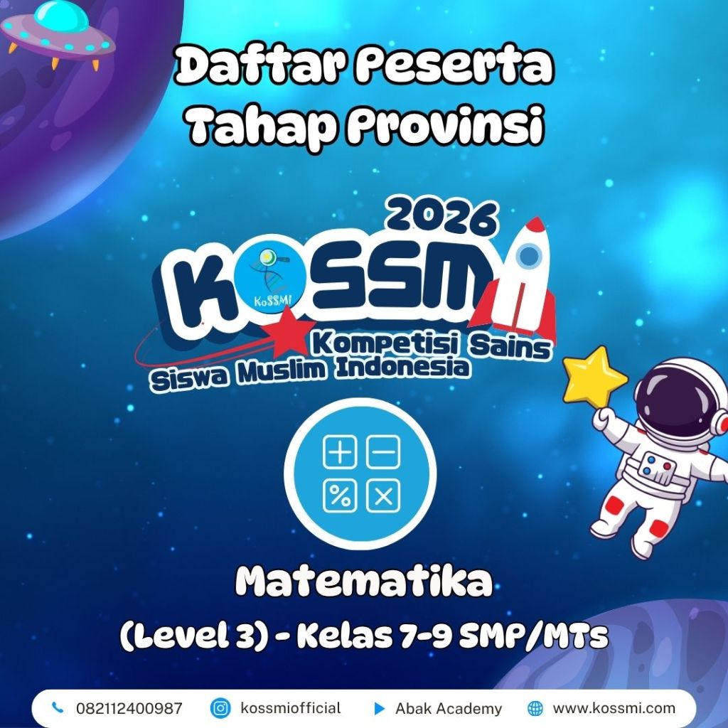 Daftar Peserta Tahap Provinsi Jenjang SMP/MTs KoSSMI 2026 Peserta Provinsi – Matematika Level 3 Peserta Provinsi – IPA Level 3 Peserta Provinsi – IPS Level 3