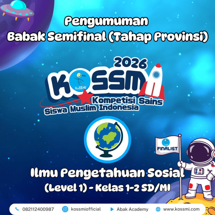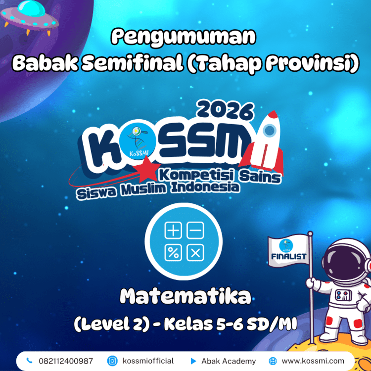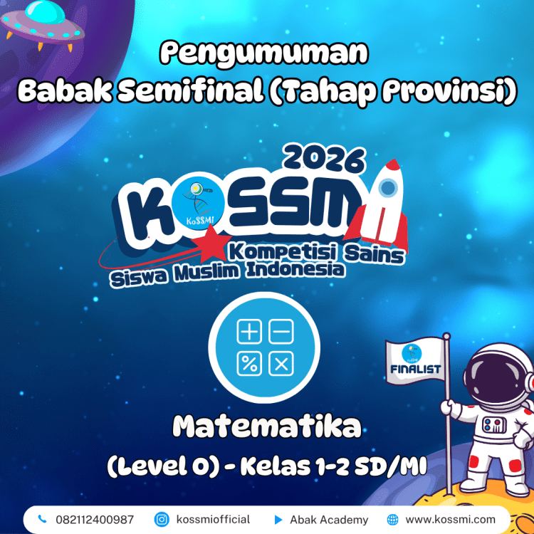 Pengumuman Tahap Provinsi SD/MI KoSSMI 2026 Pengumuman Matematika Level 0 Pengumuman IPA Level 0 Pengumuman Matematika Level 1 Pengumuman IPA Level 1 Pengumuman IPS Level 1 Pengumuman Matematika Level 2 Pengumuman IPA Level 2 Pengumuman IPS Level 2