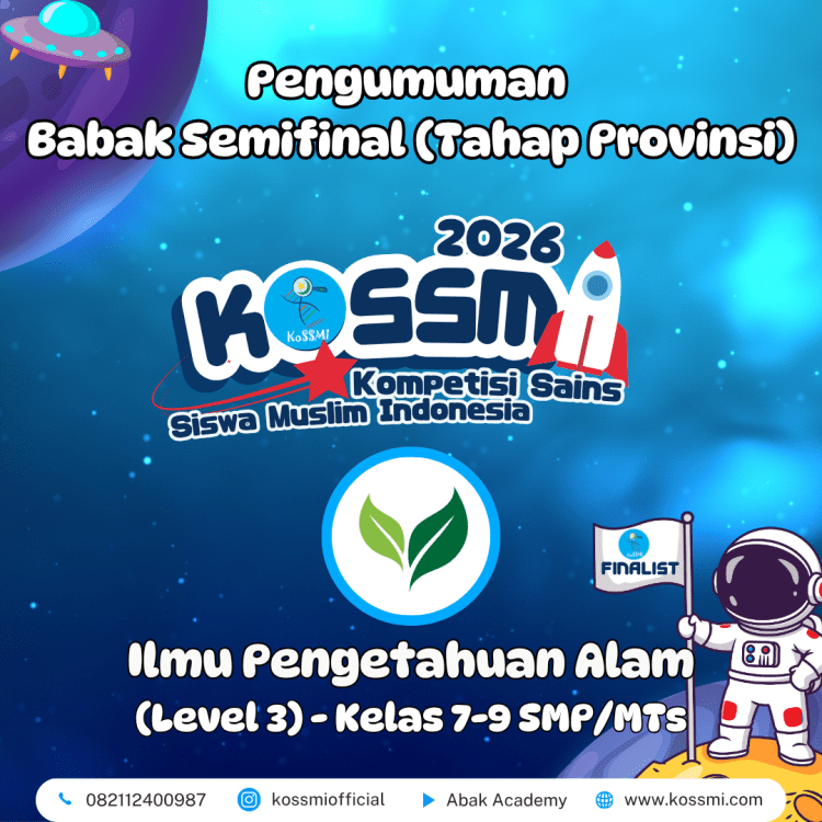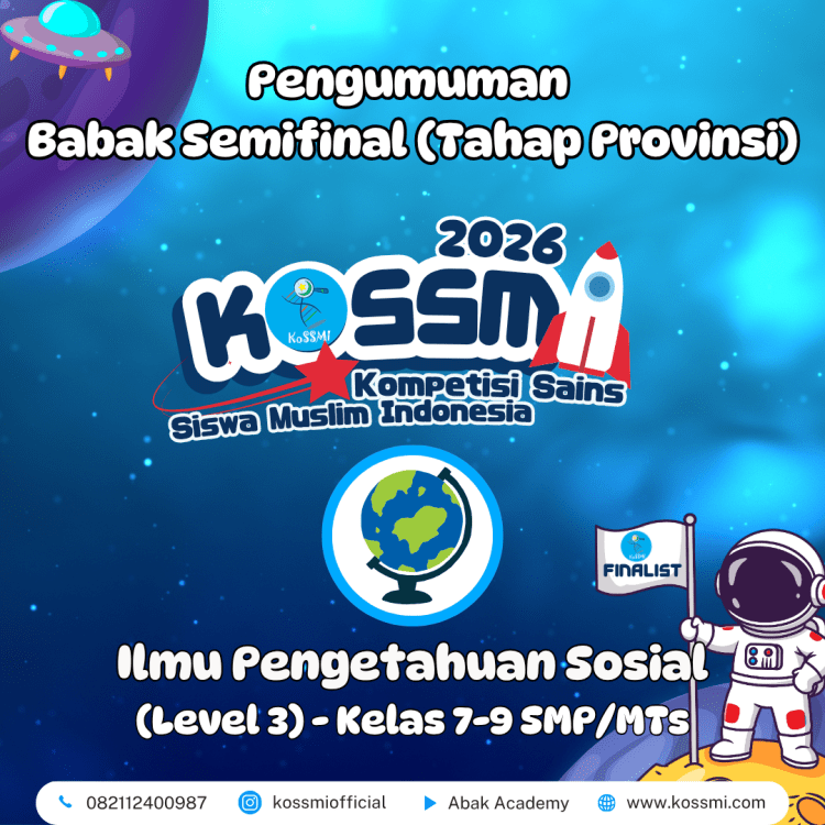 Pengumuman Tahap Provinsi SMP/MTs KoSSMI 2026 Pengumuman Matematika Level 3 Pengumuman IPA Level 3 Pengumuman IPS Level 3